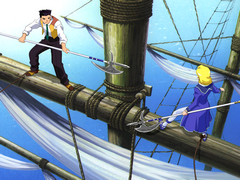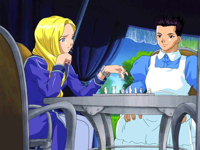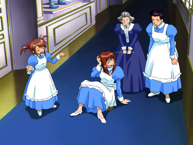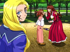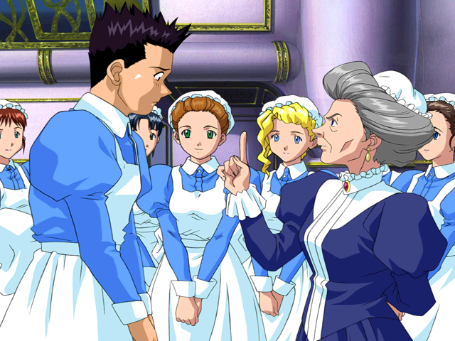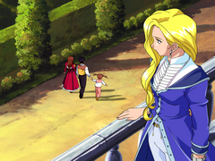 Oogami decides to teach the girls some Japanese gsmes, which the team doesn't quite know what to make of. Erica and Coquelicot love the idea, while Glycine flat out questions Oogami's sanity. They play some games like "Kick the Can", Badminton, and "Red Light, Green Light". While Erica and Coquelicot have fun, Glycine gets angrier and angrier, stating that the Japanese games are stupid and don't require any intelligence. She feels that playing them is a waste of time. Oogami tells her that having fun is the important part, and that she should get past her prejudices. Glycine, incensed at the idea that she is prejudiced, challenges Oogami to a duel, with the stakes being that if Oogami loses, he will be her servant. Oogami accepts, and they go to the Bleumer mansion to duel. Glycine explains the rule of the duel, and selects an axe for her weapon. Oogami decides to do the same. They ascend to the top of an ancient sailing ship that Glycine has on blocks on her estate, climbing up to one of the masts, lashed to it by one of their legs. As Erica prays for their safety, they fight. During the battle, Glycine slips, and Oogami hesitates, not wanting to hurt her. This angers Glycine more, and she lunges forward, taking the opening Oogami has provided. She knocks Oogami down, and wins the duel. After his loss, Oogami is brought before Glycine's caretaker, the maid Tarebuu. There he is assigned to assist the maids at the mansion. Unfortunately, there are no male servants' clothes available, so Oogmai is forced to wear a maid's outfit. Erica and Coquelicot arrive, wearing Maid uniforms as well. Erica came because helping those in need is her job, and Coquelicot was worried about how he'd make out all by himself. Before works begins, Glycine reinforces to Oogami that under no circumstances should Tarebuu be told of the works Glycine does at Chattes Noires. During the course of the day, Erica and Coquelicot both broke the same flower vase (Erica by being clumsy, Coquelicot by playing around with it). When an incensed Tarebuu decides to punish them for it, Glycine steps in to protect them, claiming that she broke it in her youth-- even though the vase was intact previously. She takes her leave before the others can thank her. Taking a break from his work, Oogami plays a game of shogi against Glycine using her chess pieces, getting her interested in a Japanese game. After the break, Tarebuu finds Oogami, informing him that an important guest, Count Riche, will be arriving at the manor imminently. Oogmai gets some tea for him, and Riche enquires if Glycine has gotten herself a new pet. Tarebuu explains that Glycine wants a commoner to study a noble's lifestyle and sends Oogami off to summon Glycine. Before he can get to her, insanely curious about Riche, Coquelicot and Erica get Oogami to peek in on him. There, they see a Japanese woman with him, but get caught by Tarebuu before they can see more. She scolds them verbally, and Riche sees the scene. He tells Tarebuu that "It is no use wasting your pity on vulgar commoners such as these. You must teach them physically!" He advances on Coquelicot with the intent to strike, and Oogami protects her. Tarebuu sends Oogami off to get Glycine once again. Oogami gets lost in the manor, and looking out a window, sees Riche in the courtyard trying to catch the pigeons there with a display of bloodlust. He decides to be cautious around this noble, and goes to find Glycine. When Oogami does find Glycine, she sadly reveals that Riche may become her fiance, as part of her fate to defend the honor of the Bleumer family. She leaves him, with a lonely expression on her face. While cleaning the great hall of the manor, Oogami finds an earring that belongs to Glycine. He goes to deliver it to her, getting whacked in the head by an opening door and knocked out cold. When he wakes up, he is being taken care of by the Japanese woman he'd seen previously. Identifying herself as Kitaoji Hanabi, she reveals she's heard of Oogami from Glycine, being the only person Glycine has told about Chattes Noires. She also reveals she's heard mainly good things about Oogami from Glycine. She tells Oogami that her father, a baron, has had many dealings with the House of Bleumer, so they are taking care of her while she studies in Paris. Sensing that Hanabi knows Glycine well, he presses her for information about Glycine's "fate". She reveals that daughters of the House of Bleumer must look for a "completely flawless bridegroom"-- a man with both strength and dignity, since history and tradition are held in very high esteem by the family. All she knows about Count Riche is that he is a member of one of the highest ranked noble families in Paris. Oogami thanks Hanabi for her help and goes to see Glycine in the courtyard of the manor, delivering her earring to her. Glycine reveals that when comparing her life to those of her viking ancestors, who battled the raging seas to defend their family and friends, her current duties of defending only rank and honor feel empty. She resigns herself to her fate, considering herself just another part of the House that she is to inherit. Oogami turns it around, stating that the pride and spirit of the House is within Glycine, and she is more than just a mere part of it. This gives Glycine something to think about, and she excuses herself to ponder the situation. Their work as maids in the Manor done, Coquelicot, Erica and Oogami take their leave from the manor. Hanabi tells them Glycine will not be coming to the Theatre tonight as she had to make preparations fo the arrival of Count Riche the next day. As they leave, Gycine watches them sadly from a balcony, lamenting that she has no choice but to live with the House of Bleumer, and that she can never be like the others. As he does his rounds for the night, Grand Mere tells Oogami that there have been an increasing number of Nobles vanishing, with no associated ransom demands. She believes it might be the w