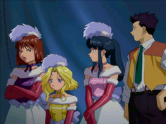 "For me, this face is a tool for work." --Lobelia Carlini "You mustn't think of fighting solely to win. We fight to protect something important to us." --Ichiro Oogami "Going through lifewithout knowing how delicious a cafe au lait would be terrible." --Erica Fontaine "The thought of learning something from Erica made me a little uneasy, so I'm glad you've come." --Glycine to Oogami "You've made a woman place her hopes in you. You be sure to take responsibility for that." --Grand Mere "Searching for something is just like love-- You can find it in the most unexpected places." --Grand Mere "Don't worry about it. One loss isn't a loss. It's only after you've lost to the same opponent twice that you can say you've really lost for the first time. So all you have to do is win next time... right?" -- Jean Sumire: Hmhmhm, we've heard all sorts of things about your activities from Manager Yoneda, Lieutenant. Sakura: And so, we came to Paris, unable to bear it...... and that's the way things are. "Tradition? You nobles of old are no more than rock-hard blockheads." --Sumire Kanzaki Oogami: What's the cause of [Iris and Coquelicot fighting]? Lobelia: You. To get into a fight over a man as dull as you... you don't do too bad. "Captain, you've got it tough, huh... Fighting the enemy, and babysitting. What are you going to do about this?" --Lobelia Carlini "Why not [have the welcome party again]? I can eat some good food again, and I can see a fight too." --Lobelia Carlini "Such a lot of amateurs...... It is as if they are playing house." --Sumire Kanzaki, on the Paris Floral Assault Squad. "Mr. Ogami. You shouldn't use the words 'If I had only'. No matter how much you say 'If I had only,' it won't do anything about the past, right? Therefore, at times like that, you should say 'Next time, I will.'" --Erica Fontaine "If I were to trick the poor, it would tarnish my name." --Lobelia Carlini "When I'm happy, I rejoice. When I'm sad, I cry. I've made it a point to be true to the emotions that I personally feel." --Erica Fontaine "Women give men dreams... Men pay for the dreams." --Lobelia Carlini "Lack of sleep is the great enemy of the skin." --Kanzaki Sumire Glycine: Nouveau Riche woman...... See full well the genuine French can-can. Sumire: Hmph. I cannot wait to see the Paris Floral Assault Squad's... true skill, or whatever. Ci: We've finished leading the civilians to safety, and the kaijin appear to be climbing the Eiffel Tower. Lobelia: Hmm...They say idiots or whatever like high places, after all. Erica: I like high places too. "I lost to her in the dance, but I will have Sumire acknowledge me in battle." -- Glycine Bleumer Ogami: the power of teamwork. You understand now, don't you? Hanabi: Yes...... Hearts that feel for one another can produce many times more power......  |