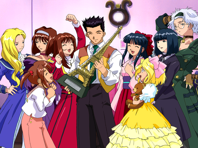 Dreaming, Oogami finds himself face to face with the mysterious Pierrot from his visions earlier. The Peirrot demands to know why humans continue to take things from the Earth. Oogami, too confused to answer, demands to know who is communicating with him, causing the Pierrot to cut off the dream. Oogami wakes up, still feeling broken from the last battle, despondent that even the true power of the Paris Floral Assault Squad was no match for Calmar and his forces. Worried, he tries to figure out what to do. Listlessly, he goes through his day, with both Mell and Ci noticing how depressed and tired he looks. Talking to them about how the team's teamwork fell apart so easily, Mell and Ci point out that Parisians value individuality over team concepts. Oogami ponders what the Tokyo team would do, and looks at a picture of them as he thinks, which Lobelia promptly steals from him and shows the others. As the others start to ask him questions about Tokyo's Flower Division, Grand Mere hands them a file to examine. Oogami is rather surprised Grand Mere just happens to have one on hand, but before he can press her on the details, a rock smashes through the window, with the Japanese words "Light comes from the east; Sakura blooms in the city of Paris" written upon it. Incensed that her window has broken, Grand Mere instructs Oogami to find out who did it, post-haste. Later in the day, Oogami reports back what little info he has-- that it was a man in a white suit carrying a guitar, running by while chewing on French Bread. As he makes his report, the others notices someone peeking into the entrance of the theatre. They give chase, with Erica's portion of the chase ending prematurely as she bangs her head onto a signboard. Erica asks Oogami if he's solved the puzzle of the letter. Oogami replies that he hasn't, and Erica mentions her interest in seeing the "World Flower Exposition" that just opened. Oogami wonders if there might be a Cherry Tree there-- which would explain the "blooming cherry blossoms" portion of the note. Excited, Erica rushes off to the exhibit with Oogami. When they reach the exhibition, they find a cherry tree just like the one in Ueno Park in Tokyo... and something else. Shinguuji Sakura, Iris Chateaubriand, and Sumire Kanzaki appear, with iris revealing that they traveled an entire month by sea to get to Paris. Erica introduces herself to the girls very enthusiastically, to the point where they are a little intimidated by her, especially Iris. Sakura explains that everyone in the Japanese Imperial Assault Squad has heard about what has been going on with Oogami in Paris, and that, unable to stand it any longer, they've made their way to Paris. Excited. Erica decides to get a welcome party for the girls going at the theatre, and heads off to get things started. Later that day, at the theatre, introductions are made and the party begins-- but peace is not to last. Glycine begins to argue with Sumire, arguing that the duty of defending the people should be left to nobility, not commoners, or "Noveau Riche", pointing that barb at her directly. Sumire finds the notion of a nobility founded on tradition alone odd. Sumire finds Glycine rude and lacking in manners. Even as Oogami and Hanabi try to defuse the situation, Iris and Coquelicot start to argue with each other, due to Coquelicot's informal way of addressing Oogami. Sakura and Erica then begin to argue over whether or not Oogami will remain in Paris or return to Japan. When Erica is informed that Oogami will have to return, she becomes upset, angry that what happened between her and Oogami in bed was just a game. Shocked, Sakura demands to know the truth from Oogami, who is just as clueless. The fighting between the two squads gets worse, and Sakura asks Erica flat out what happened, to which Erica replies "Yes... I'm sure we were together-- in my dream." That situation defused, it is decided to have the welcome party again. But Oogami realizes the tension between the groups still needs to be resolved once and for all, and goes to Grand Mere for help. Grand Mere reminds Oogami that both groups of girls are in the business of performing for the audience, and if he can find a way to leverage what they have in common, there may be some way to get them to make up. Later that night, while doing his rounds, Oogami meets Kayama, and discovers he was the one who threw the rock into the window of Grand Mere's office. Kayama hands him a flyer for a dance contest. Oogami decides to propose that they all enter the contest together, so they can make up. Of course, when the idea is broached to the girls, they, for the most part, decide to use the competition as a way of settling grudges amongst themselves. Elsewhere, Calmar decides that his next target will be the Eiffel Tower. He deploys Ciseaux and Python to destroy it. The day of the dance contest, tensions are running high between the Paris and Tokyo groups. As the Paris team goes up to perform, the Tokyo girls notice issues with their teamwork. The Tokyo team takes the stage, and despite their pride, the Paris team can see the qualitative difference between them, admiring the difference between them. While the level of skill in dancing is the same, the Tokyo team has something extra-- their movements seem much more cohesive. As they watch, Erica notices in horror that the heel of Iris' shoe is about to break, and it looks like disaster for the Tokyo team's performance. Sakura and Sumire, however, quickly get in front of her, blocking the audience from seeing, and allowing her time to take off her shoes and continue dancing. In shock, the Paris team (except for Erica) realizes they've been beaten, and that this is the level of teamwork they've been missing. Oogami reminds them that "true teamwork comes not from thinking of yourself as the center but from the other person's feelings." Before the winning team can be announced, Ciseaux and Python attack the grounds. As the Tokyo group de