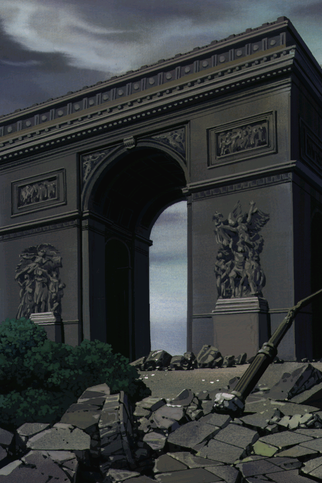 As the tree's roots scream towards the Éclair through the underground tunnel, the Éclair breaks free of its mooring and speeds away, using its grappling arms to tear away roots that are trying to grab it. Mell reports that small weapons of an unidentified type have launched from the Great Oak Tree and are heading for the Éclair's steam units. If the units are damaged, the Éclair will explode. Oogami orders everyone to move out, but they hesitate. Grand Mere emphasizes that if they don't take care of this now they will all die. They still don't move. Oogami finally decides he will go alone if he has to. Seeing him act, his vice-captain (Lobelia in this case) decides to go with him as well. As the battle goes on, Lobelia is, on the one hand, pleased that the others aren't around so that she can fight as she wants, but on the other hand, she finds herself upset that because of the blood of the Parisi, she might not be able to fight alongside the others any more, to listen to their "stupid talk", or get into arguments with them. Oogami reminds her of all the things everyone has gone through, that they've always joined forces when it matters and they're still friends, and more than that, family. Lobelia appreciates the sentiment, but plays it off by saying she already knew that, and if they died they wouldn't be able to pay her bonus any more, so he has to protect them. They battle the strange creatures-- called Calamites-- and manage to fend them off. But just as they manage that, Ci radios to inform them that there's a shutter door that didn't open blocking the path of the train. With a collision imminent, Oogami orders that they fire the main gun on the trail to blast it open. As more enemies appear, the rest of the Paris Assault force finally arrives, unable to stand by any longer as Oogami and Lobelia fight alone, and realizing they care more for each other than any blood of the Parisi. The Calamites are defeated again, but Mell reports that the Éclair's steam units have tart to go out of control. There is a huge explosion from the train. Oogami wakes up after having been thrown clear from the Éclair, and finds Lobelia. They see a huge crater and realise it must be from the explosion of the Eclair. Oogami worries that everyone might be killed. Lobelia makes up her mind to go back in the crater and try to find survivors. Oogami orders her to stop, and she accuses him of wanting to abandon the others. He points out that if they too fall, so will Paris. For the moment, they withdraw. Lobelia is taking it hard, wondering if the others could have been saved. She angrily remarks "God damn it, And here I thought it wouldn't hurt me one bit if those guys went off and died. Why do they have to make it so hard on me?" Angrily, she declares that she's had enough, that if she has to "go on with these feelings some rotten woman would have, I feel like I'll go crazy!" and she says it's all his fault, that he's made a mess of her, and that he needs to take responsibility for this. Oogami asks her what she means by that, and Lobelia angrily says she'll show him. Oogami, worn out from the battle, starts to sleep, but suddenly wakes and finds a note near him that reads "I'll be waiting one step ahead of you, in hell. --Lobelia." He realizes that she means to head off on her own, and he yells out to her to stop. With a start, Lobelia realizes he was awake. Oogami demands to know if she intended to fight the Great Oak Tree all by herself. Lobelia replies flatly that it's a forced double-suicide. She intends to appease the Great Oak Tree with her own life. Oogami can't believe it. Lobelia replies that she's just a villain with a thousand-year sentence after all, and that no one would be sad to see her go. If she can take the tree down with her, it wouldn't be such a bad way to go. Oogami angrily declares he won't let her go alone. Lobelia replies that everyone else is dead, and only she, the villain, is alive. She says she didn't like them, but she needs to go die along with them, saying they'd be lonely in hell. Oogami tells her not to give up hope, that as long as she doesn't give up, hope will answer her without fail. Lobelia replies that as usual, he's a hot headed guy. At that moment, there's a transmission from the Kinematron. "Even after God has left us, hope is in our grasp. We wait for you at L'Arc de Triomphe. - Grand Mere" Shocked, Lobelia exclaims "You got a message from those guys who don't know they're supposed to be dead?!" Oogami grins and says "That's right. You will come with me to L'Arc de Triomphe, won't you?" Lobelia chuckles and agrees to tag along. Making their way there they reunite with everyone. Oogami remarks he was amazed anyone could have survived that explosion. Mell and Ci say they thought they were done for, but a god of rescue appeared before them and saved them. Grand Mere introduces him. Shocked, Oogami blurts, "Ambassador Sakomizu! You rescued everyone, Ambassador!?" Sakomizu chuckles and asks him if he could drop the "Ambassador" part, confusing Oogami. Grand Mere explains that Sakomizu is the subdivision head of the Paris Floral Assault Squad, L'Arc de Triomphe branch. Oogami is stunned that there's a base of operations under the Arch. Sakomizu confirms it, and says they have their "final trump card" there as well. Grand Mere confidently declares that it's a top secret weapon that will turn the tables on the entire battle in one fell swoop. Lobelia grudgingly admits that it's embarrassing, but it just like Oogami said. One can't give up hope. TO BE CONCLUDED  |