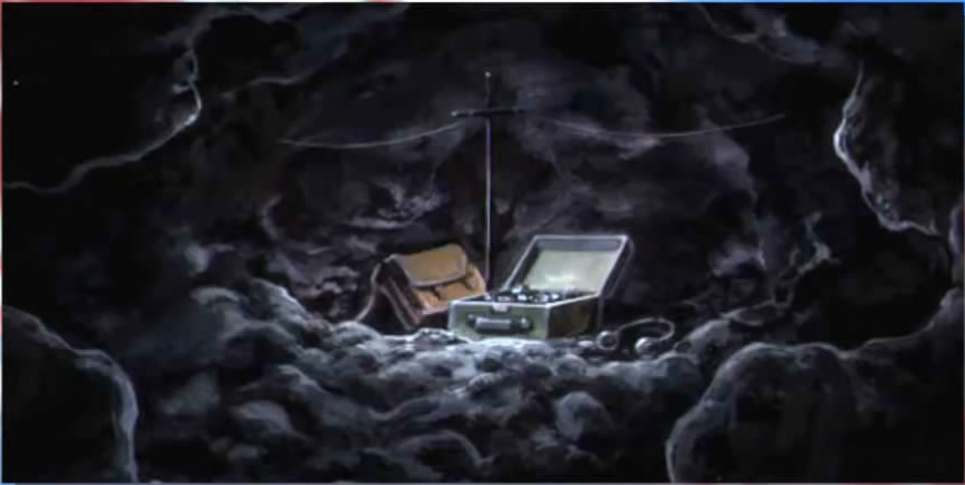 Deep in the back of the cave, they find a radio set. Someone else is making transmissions out!