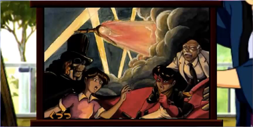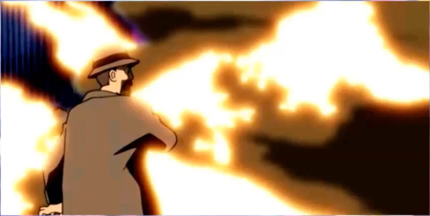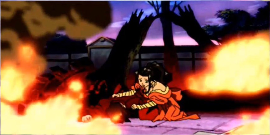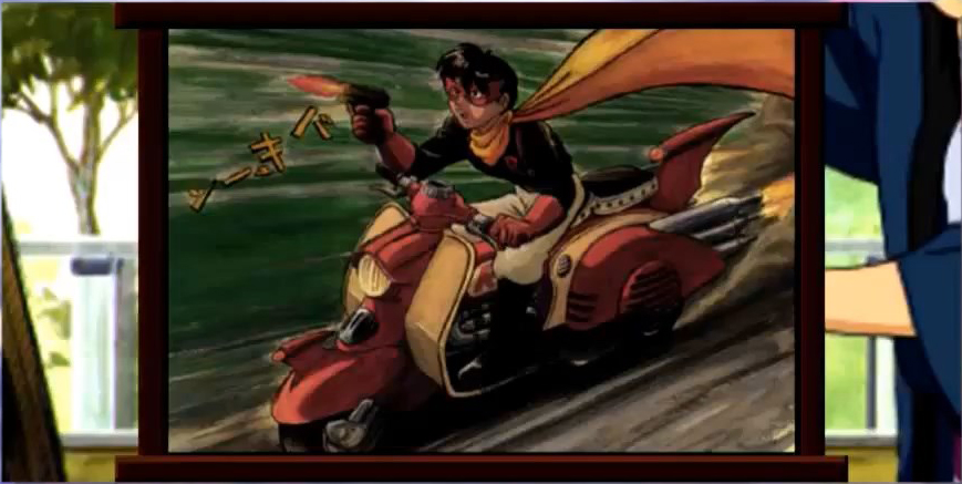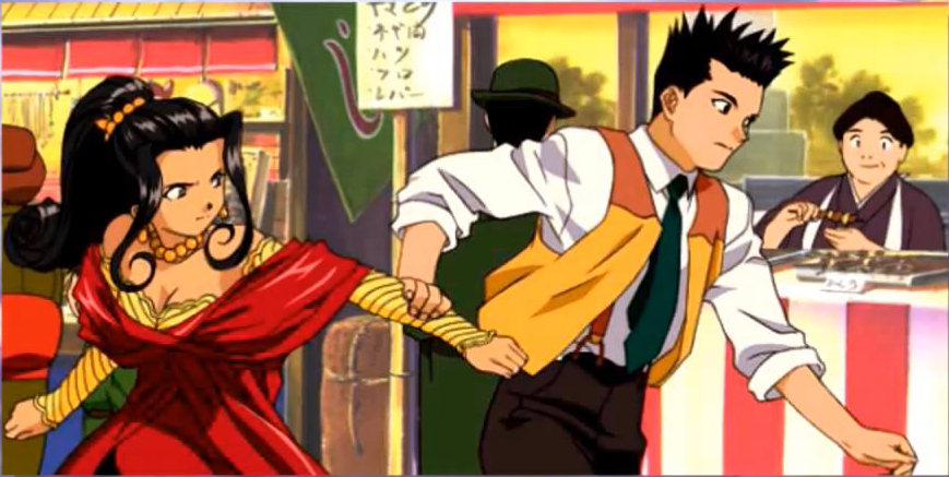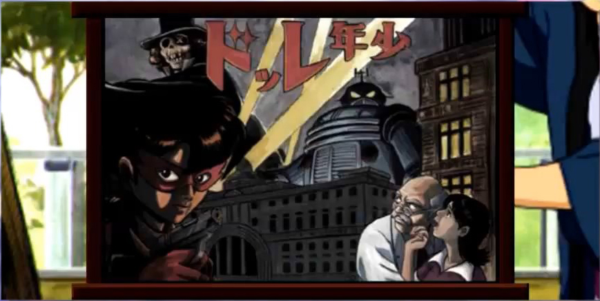 Oni-ou appears before the Gogyoushu and reports that there are "three sealed gates" left, and that "that person" is also on the move. Mokujiki replies that "that person" is truly "the moon of darkness floating in the dark night." He remarks Teito can only have prosperity if it is filled with evil. Kongou angrily interjects that he doesn't care anything for that. He feels that now that they know where the Kagekidan headquarters is, they should attack immediately. He demanded to be ordered to attack because he wants to pay them back for what happened for Suiko. Mokujiki observes that Kongou is too hotheaded and thus will be the next one to die. He states that "those who make light of my plans are fools, but those who are in a hurry to die are idiots." Tsuchi-Gumo cuts in, saying that given the weak, emotional way that Kongou is going on, it would be amusing to see him die trying to take revenge. In her view, Suiko died because she was too soft, and couldn't renounce her womanhood. Kongou is enraged, but Oni-ou interjects and says that Kasha will be in charge of the next operation. Kasha accepts, stating that he will turn both Teito and the Kagekidan into ash with his flames, because there's nothing as pleasant as ash that burns well. Oni-ou chides him to not play around too much, but Kasha retorts that humans are intellectually afraid of fire and everything wil be fine. The Hanagumi are at a fall festival. Iris is excited to see all the sights, and Kanna is anxious to eat all the food. Oogami catches a play of the Shounen Red show, in which the daughter of famed scientist Dr. Yukawa--inventor of the gamma bomb-- is kidnapped by Dokuro X, who demaned the blueprints for the bomb and flees in his Iron Man Robo Sigma, but then Shounen Red appears and goes after them on his bike. After the show, he meets Orihime, who notes Oogami always seems to have plenty of free time. Oogami asks what she's doing, and she reveals she's got free time as well. He offers to accompany her through the festival, and she agrees to permit him to come with her. Oogami asks her what she thinks of the Matsuri, and she responds that Italian festas are thousands of times larger, more refined and filled with enthusiasm, and that there's no comparison. They come to a booth with a portrait painter, who offers to paint their portraits. Orihime wonders if this person could be any good, and he replies that he studied painting in Italy, so he thinks that he's probably not all that bad. Hearing he's from Italy, Orihime becomes shocked, wondering is this person was-- At that moment the man becomes shocked and asks if she's Orihime. Confused, Oogami enquires if she knows the painter, and angrily, Orihime exclaims that would never be an acquaintance with a Japanese man. She becomes upset and runs off, saying that all this nonsense is making her ill. The painter asks Oogami to go after her, and he does. As Oogami leaves, the painter sadly utters Orihime's name.