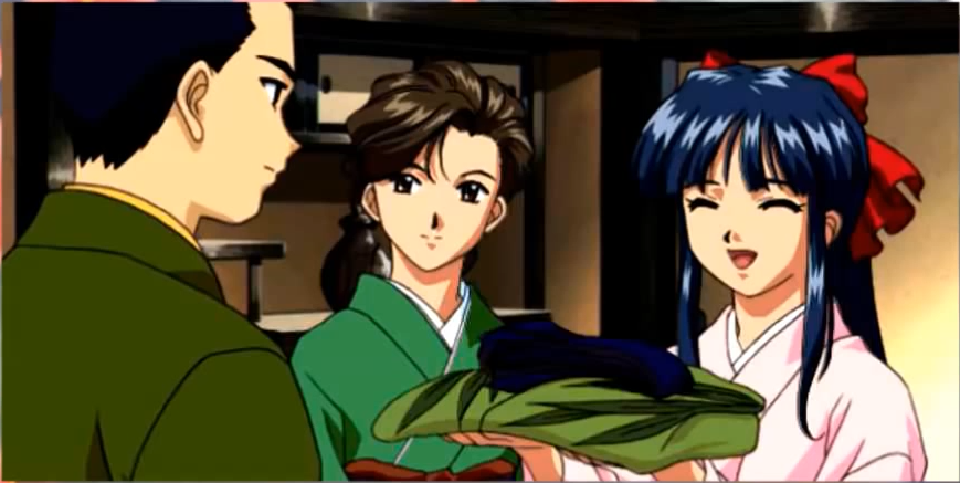 Kohran's Trip Kohran takes Oogami to Kobe to meet a man named PErcy Howard who taught her how to work with machines. She lived in his home in Kobe before going to join the TKD Howard's home looks normal until you activate a switch which transforms it into a research facility. In the house they see Kohran's pocketwatch, the thing that saved her life. When her village was attacked by bandits, a bullet hit the watch instead of her. She shows Howard the Kinematron and they get a transmission that the enemy has appeared in Ouji. and the Shougeimaru is en route. Orihime's Visit Orihime's father was released from the hospital, and she wants him to meet her parents, as he was responsible for reuniting them. They reunite. Ogata paints both Oogami and Orihime. but doesn't finish as the enemy attack and they have to go.  |