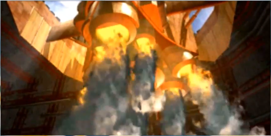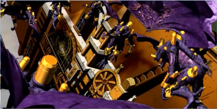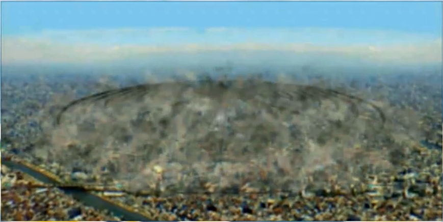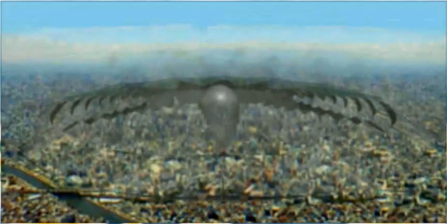 Kyougoku continues to chant as Kouma swarm over the city, and he commands them to burn Teito to the ground. He declares that everything will be consumed by the vengeful spirit of Musashi, and they need to consume the power he's releasing in order to pay the way for the birth of the "real Teito". In the Command center, Kaede remarks that she never would have believed that Kyougoku was still alive, but it appears true that the man who died after the end of the Coup d'etat was a stand-in. Yoneda realizes that the coup was just a distraction to allow Kyougoku to move himself;f further underground and resurrect Musashi. Kohran adds that to make matters worse many of the Kokkikai are still alive, and Maria adds that Oni-ou was actually Sakura's father. Sakura remains silent, processing all this. Yoneda tells everyone to remain calm, that now, more than ever it's important to think things through and sort through their information so they can find a way forward. Oogami asks what the "Hachi-Kimon-Fuumajin" are that the Kokkikai mentioned. Yoneda takes out a map of the battles where the TKD have fought the Kokkikai and points out that if you connect the locations, they form an octagon. At each point of the Octagon, there is a common item-- a Torii. (Shrine Gate) . After each battle, one of those has appeared. Yoneda explains that the Hachi-Kimon-Fuumajin appears to be a means of releasing the energy of Teito and the battles were a means for the Kokkikai to erect the Torii. Kanna is upset they hadn't noticed the pattern before. Oogami then asks what the "Musashi" is, but Yoneda replies that he has no idea-- the only thing he does know is that you can sense an enormous malevolence from it, and Iris says she feels sick whenever she looks at it. Yoneda says that whatever it is, it's likely more horrible than the Seimajou which appeared two years ago. He believes the only way to deal with the situation is to capture Kyogoku and make him explain what the Musashi is. Kaede reports that the Moon Division has discovered that Kuoygoku comes from a long line of "On'you" experts -- people who can manipulate occult forces. Oogami asks what the nature of these new Kouma are that they've been seeing and Yoneda replies that he'd heard of experiments where the army had captured Kouma from the Kouma War and were using experiments to try and make man-made Kouma, as Kouma combined with machinery would know neither fear nor fatigue and be undefeatable via conventional weaponry as well as having the ability to be mass-produced. Yoneda believes both Yamazaki's death and the coup were just covers to advance this true objective. Everyone worries about how they will fight such a monster, and Yoneda reassures them that their largest trump card still sleeps under the city-- the aerial battleship Mikasa. Sumire protests that the Mikasa was destroyed in the last battle with Aoi Satan, but Kaede replies that while the forward part of the vessel was destroyed and remains in Tokyo bay as a memorial park, the main body of the ship was recovered and repaired in absolute secrecy. This new vessel, the "Shin-Miskasa" is undergoing final preparations for launch. Once that's done, the counter-attack will begin. After the briefing, Sakura steps outside with Oogami to talk about her father. She says that Oni-ou's stance was unmistakable. She worries and asks Oogami what she should do. Oogami tells her that the only thing to do is reawaken Kazuma's heart, that since he was reborn thanks to the same dark arts that brought back Yamazaki, Kyougoku probably is controlling him. So that spell needs to be broken. Thus the key is to defeat Kyougoku. Sakura says she vows to fight her father, and through their crossed blades she will reach his heart and re-awaken him. At that moment they hear the unmistakeable sound of Kouma, who have come to attack the Theatre. Sakura and Oogami realize they can't fight them off alone, and Oogami tells Sakura to leave him behind and warn the others, but Sakura refuses to leave his side. Oogami knows they both can't stay behind and get word to the theatre in time-- but luckily at that moment Kayama and the moon division appears to deal with the Kouma, and he tells Sakura and Oogami to get to the others while he and his forces hold off the enemy. Oogami and Sakura make it to the Mikasa, where they ask if it's ready for launch. All checks are good and civilians have been evacuated from the launch area. They await Yoneda's orders. He tells them that they're going to launch their greatest offensive ever, and orders the Mikasa to launch. The mighty battleship's segmented sections are locked together and a massive maw opens up in the center of the city as the giant ship blasts into the sky and rights itself. Oogami rejoices as the Mikasa takes flight, but Yoneda tells him it's too early for that-- all they've done is risen into the arena-- now it's time to fight. He orders course set for Musashi. Elsewhere in the city, Count Hanakoji and Navy Cabinet minister Yamaguchi discuss the situation. Yamaguchi laments that the Imperial Army is no match for the Kouma, serving as nothing more than "a lamplight against the wind" and that it's only a matter of time before the city falls. Hanakoji replies that in that case the only people who can stand against Kyougoku are the TKD and the battleship Mikasa. On the Mikasa, Oogami devises a daring head-on strategy. Using the ship's main cannon, they'll blast a hole in it, and then ram it, landing the Mikasa inside and attacking the enemy with the goal being to destroy it from within. No sooner has this plan been decided than alarms go off- Kouma have attacked the Mikasa, trying to breach the engines, apparently planning much the same thing as the Kagekidan. Oogami leads one half of the Kagekidan to attack the invaders, and the other half will move out to continue the rest of the battle plan. In the engine room of the Mikasa, Oogami's squad encounters Tsuchi-Gumo and a contingent of Koum