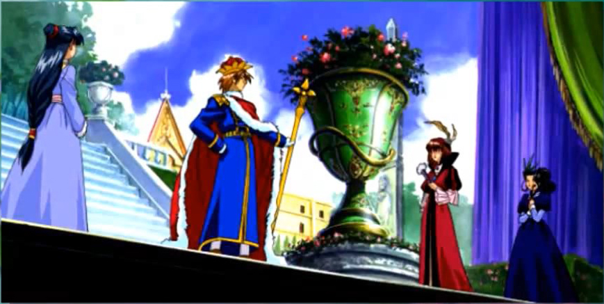 Oogami and the others gather at the army hospital where General Yoneda was taken. They meet Saki, who says he's in critical condition. While his tremendous force of will is keeping him alive, he's not concious and the chances of him regaining conciousness seem to be almost nil. Oogami does his best to cheer up the Hanagumi, who are all shocked and despirited over Yoneda's condition. Yuri informs him that whoever shot Yoneda had to have a good knowledge of his whereabouts and was an expert marksman. The investigation is not going well, as there was no evidence left at the scene to identify the criminal. Some think it was an assassination plan on the behest of a secret intelligence organization from another country. Later Oogami talks to Reni, who confirms by the angle and penetration of the bullet that the sniper must have worked from a far off Location. Oogami wonders how Reni would know that, and Reni reveals that he too, knows how to shoot like that. Before Oogami can press further, Reni leaves and Oogami goes to see Sakura, who is looking over the photo of her father, Yoneda, Yamazaki and Ayame, lamenting that they're almost all gone now. Oogami comforts Sakura, but gets disturbing news from Kasumi. All funding to the TKD has been suddenly been cut off. Oogami and Kasumi decide the best thing to do is focus on the upcoming summer perfomance of the Theatre in order to make some money to keep things afloat. Oogami gathers the Hanagumi members and informs them of the situation. They all agree to help make the Summer performance work. Sakura points out a huge problem, however-- they have no one to play the male lead of King Lear. As everyone's spirits begin to fall, a new voice tells them to cheer up and hold it together. Kirishima Kanna has returned. Oogami introduces her to Reni and Orihime, and explain the situation. Kanna is worried that Sumire is still at home, but denies it. Rehearsals begin, and Kanna points out that King Lear is a rather dour subject for a play, especially in such dark times. Sakura suggests they modify the play so that Lear is a cheerful, enthusiastic old man, much like the Yoneda they want back. Orihime is scandalized by the idea of giving King Lear a happy ending, but the others all agree. Kanna drags Oogami off for a few moments to spar with him and then reveals that up until now she has only been training to get strong so she could catch up with her father, but now she feels she wants to get strong for everyone else. The rehearsals continue. Later that night, Oogami is surprised by a Kinematron call from a despondent Sumire, who asks him who is more important to him, her or the squad. He tells her that she's important to him, and then she says farewell and cuts off the transmission. Oogami is shocked and wonders what's happened. At the headquarters of the Kokkikai - Gogyoushou, the masked man-- Oni-ou, asks if everyone has gathered. Kongou, angrily asks why Oni-ou is playing boss, stating that "If we have the time to be having an assembly, we should be taking care of [the TKD]!" Another of the assemblage, "Tsuchi-gumo", tells Kongou to be silent since he has already lost to the enemy once. Mokujiki laughs at this, stating that Tsuchi-gumo is as harsh as ever, but that lost battle is not a waste, that things are still within the scope of his calculations. The next member of the group, Kasha, replies that winning or losing is trivial, but killing the Hanagumi is the real problem. Oni-ou asks how their other member, Suiko is doing. Mokujiki replies that she's already in position and is doing well. Oni-ou approves and reveals that the reason he has gathered everyone is that thanks to "that person"'s efforts, the Kagekidan has lost all its funding. Kasha thinks the starvation tactics are appropriate. Kongou believes them boring. Oni-ou remarks that there is still one person who can provide capital. Mokujiki states that he's calculated for that, and all that needs to happen is that source needs to be cut off. Oni-ou ponders this. "Crush them, eh?" Kongou demands to be allowed to do it, but Tsuchi-gomu points out his mecha is still damaged, and she requests permission to do it, stating that she's tired of easy prey and wants to fight prey that can bite back. Oni-ou grants her permission, and Kongou protests, saying that his mecha will be repaired soon. Oni-ou rebukes him, but warns Tsuchi-gumo not to betray "that person"'s expectations. The next day at rehearsals, Oogami looks depressed and Kanna tries to get to the bottom of why. Oogami tries to deflect the question by praising Kanna's performance as King Lear, but eventually admits he got a late night call from Sumire. Yuri bursts in exclaiming that Sumire is getting married to the young son of Viscount Makibishi. If the marriage goes through, funding will resume for the TKD. Kanna realises with horror that Sumire intends to sacrifice herself for the good of the TKD. Oogami declares that they'll go save her if she's being wed against her will. Even the aloof Reni agrees, stating that "If that person returns to us, the Hanagumi's fighting power will be strengthened as well". At the Kanzaki manor, the butler, Miyata Kyousei informs Sumire that her groom-to-be is waiting to see her and her parents. Sumire asks him what he thinks of her prospective groom, and he replies that he only cares for her happiness and wishes that she would stop doing dangerous work and search for her own happiness. Oogami and the others arrive at the Kanzaki manor, but the gate is locked. Oogami tries it, but it's secure. Miyata Kyousei confronts them from the other side of the gate and tells them he cannot allow them to enter, because today is an important day for Sumire, and if they want to get in, they'd have to destroy the gate to get it. Kanna obliges. The group charges towards the manor and guards try to stop them. They deal with them and, leaving Iris, Sakura, Orihime and Reni to cover them, Oogami and Kanna make their way inside. Kann