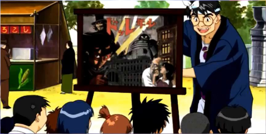Oni-ou appears before the Gogyoushu and reports that there are "three sealed gates" left, and that "that person" is also on the move. Mokujiki replies that "that person" is truly "the moon of darkness floating in the dark night." He remarks Teito can only have prosperity if it is filled with evil. Kongou angrily interjects that he doesn't care anything for that. He feels that now that they know where the Kagekidan headquarters is, they should attack immediately. He demanded to be ordered to attack because he wants to pay them back for what happened for Suiko. Mokujiki observes that Kongou is too hotheaded and thus will be the next one to die. He states that "those who make light of my plans are fools, but those who are in a hurry to die are idiots." Tsuchi-Gumo cuts in, saying that given the weak, emotional way that Kongou is going on, it would be amusing to see him die trying to take revenge. In her view, Suiko died because she was too soft, and couldn't renounce her womanhood. Kongou is enraged, but Oni-ou interjects and says that Kasha will be in charge of the next operation. Kasha accepts, stating that he will turn both Teito and the Kagekidan into ash with his flames, because there's nothing as pleasant as ash that burns well. Oni-ou chides him to not play around too much, but Kasha retorts that humans are intellectually afraid of fire and everything wil be fine. The Hanagumi are at a fall festival. Iris is excited to see all the sights, and Kanna is anxious to eat all the food. Oogami catches a play of the Shounen Red show, in which the daughter of famed scientist Dr. Yukawa--inventor of the gamma bomb-- is kidnapped by Dokuro X, who demaned the blueprints for the bomb and flees in his Iron Man Robo Sigma, but then Shounen Red appears and goes after them on his bike. After the show, he meets Orihime, who notes Oogami always seems to have plenty of free time. Oogami asks what she's doing, and she reveals she's got free time as well. He offers to accompany her through the festival, and she agrees to permit him to come with her. Oogami asks her what she thinks of the Matsuri, and she responds that Italian festas are thousands of times larger, more refined and filled with enthusiasm, and that there's no comparison. They come to a booth with a portrait painter, who offers to paint their portraits. Orihime wonders if this person could be any good, and he replies that he studied painting in Italy, so he thinks that he's probably not all that bad. Hearing he's from Italy, Orihime becomes shocked, wondering is this person was-- At that moment the man becomes shocked and asks if she's Orihime. Confused, Oogami enquires if she knows the painter, and angrily, Orihime exclaims that would never be an acquaintance with a Japanese man. She becomes upset and runs off, saying that all this nonsense is making her ill. The painter asks Oogami to go after her, and he does. As Oogami leaves, the painter sadly utters Orihime's name.